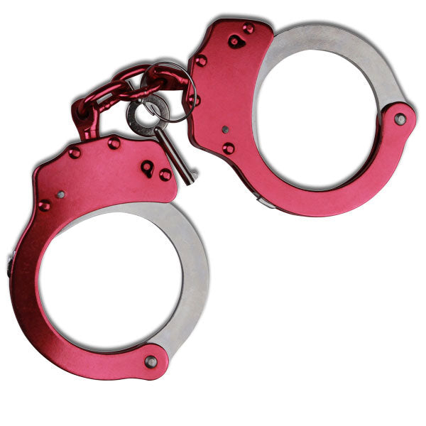 Disse håndjernene fra MTech USA er laget i karbonstål og bygget for å tåle bruk over tid. Materialet gir høy styrke og solid konstruksjon, mens finishen beskytter mot slitasje og korrosjon. Modellen leveres i to varianter – klassisk nikkel/sølv eller metallic rød, slik at du kan velge den stilen som passer ditt utstyr.