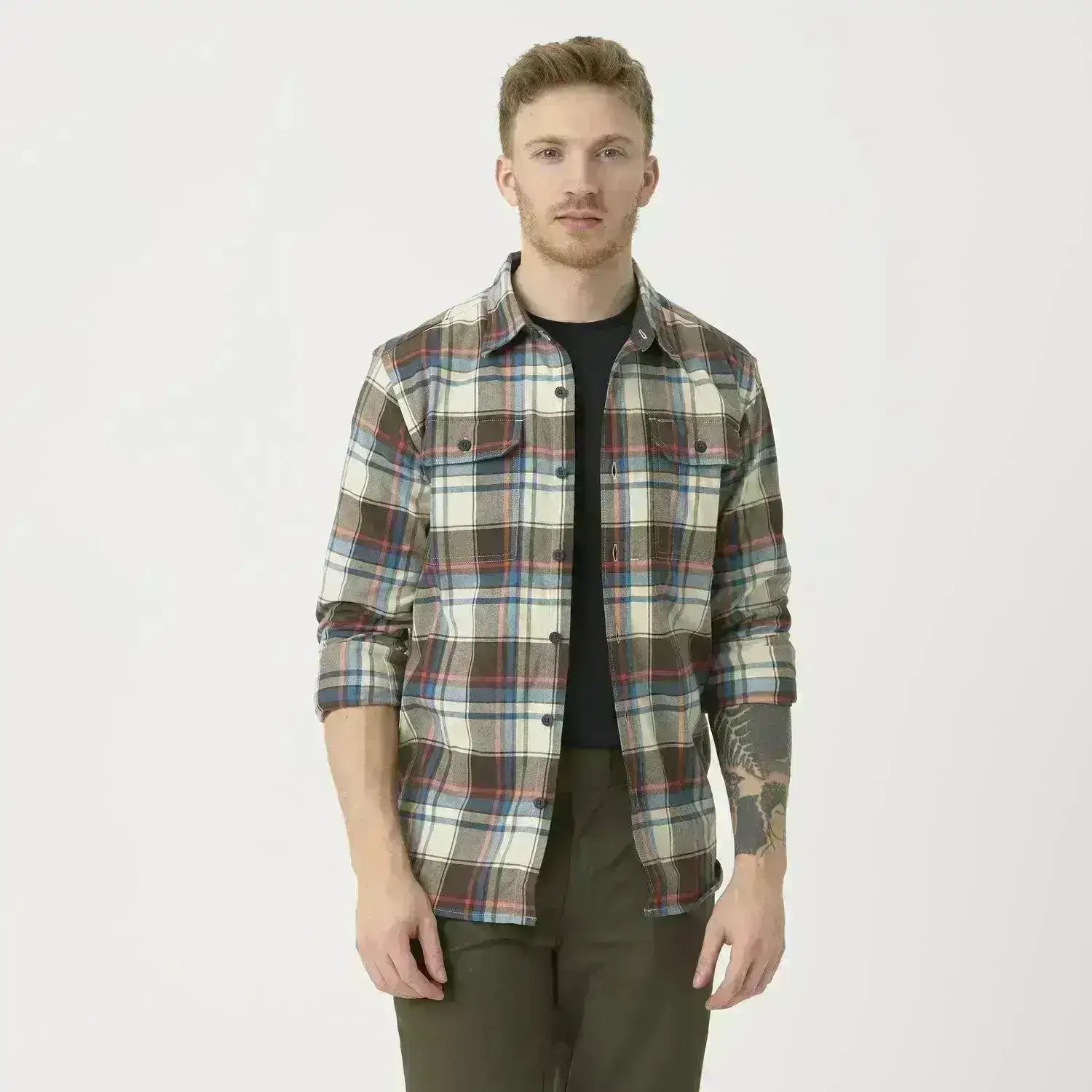 Skjorten har knapper foran, på brystlommene og på ermene, noe som gir et tidløst preg. For EDC (Everyday Carry) gjenstander finnes det en skjult, innvendig lomme med glidelås. I tillegg har den en integrert klut for rengjøring av briller, praktisk plassert på innsiden av skjorten. Laget av lett og pustende materiale, er dette et ideelt valg for både hverdagsbruk og mer spesialiserte behov.