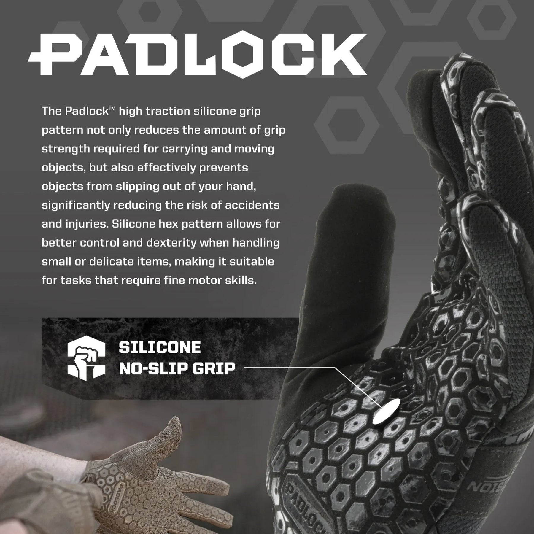 • Padlock™ silikonmønster i håndflaten – Sikrer godt grep under bruk.