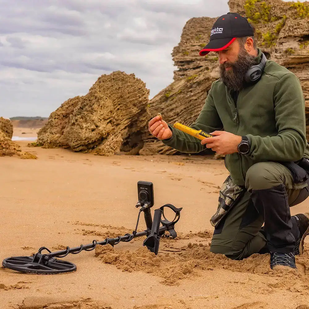 Nokta AccuPOINT er en toppmoderne pinpointer som kombinerer presisjon, teknologi og brukervennlighet i en slitesterk og kompakt enhet. Med fargeskjerm, justerbar følsomhet og trådløs lyd er AccuPOINT laget for deg som vil ha maksimal kontroll – både på land og under vann.