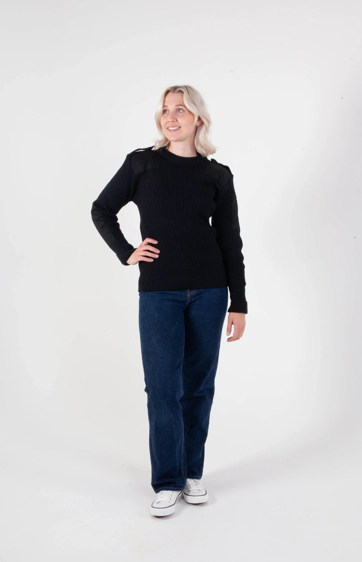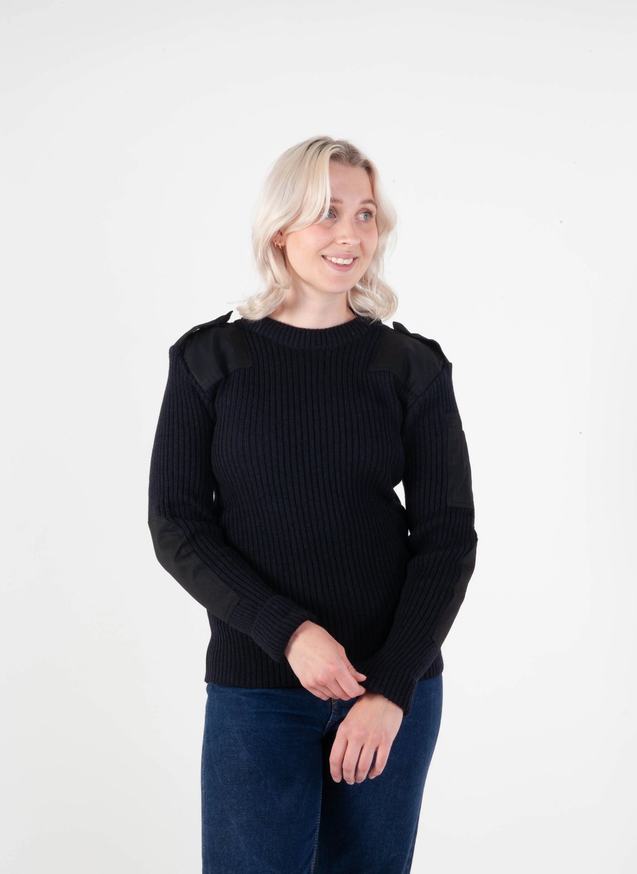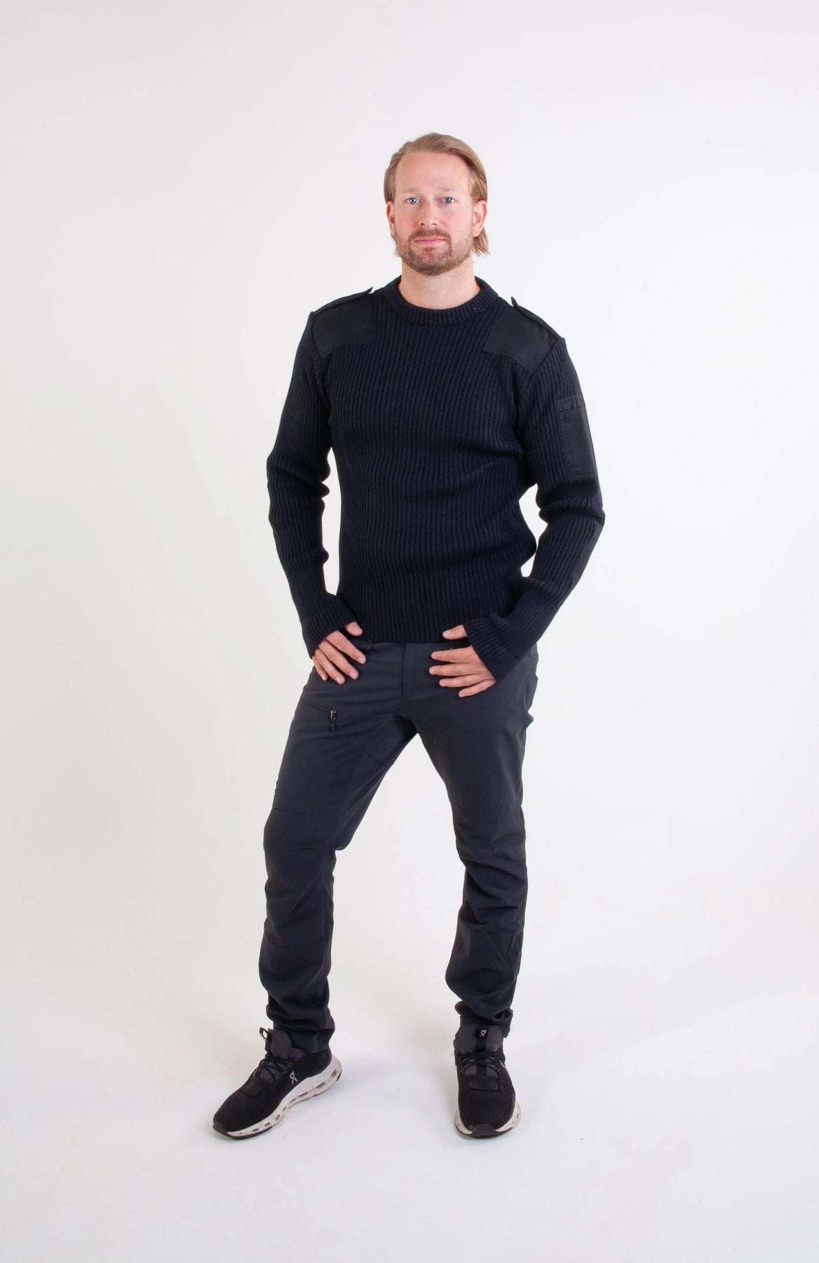 Norsk nato-genser sort – unisex ullgenser med forsterkninger