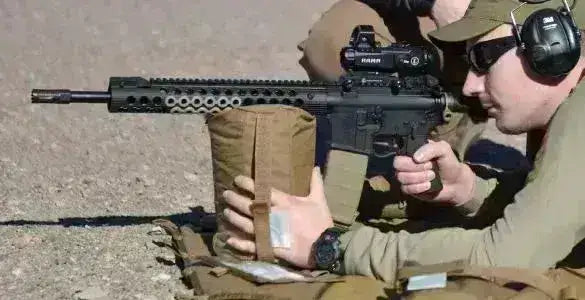 Praktisk støtte til rifle - Kompakt sekk som er 25x15cm