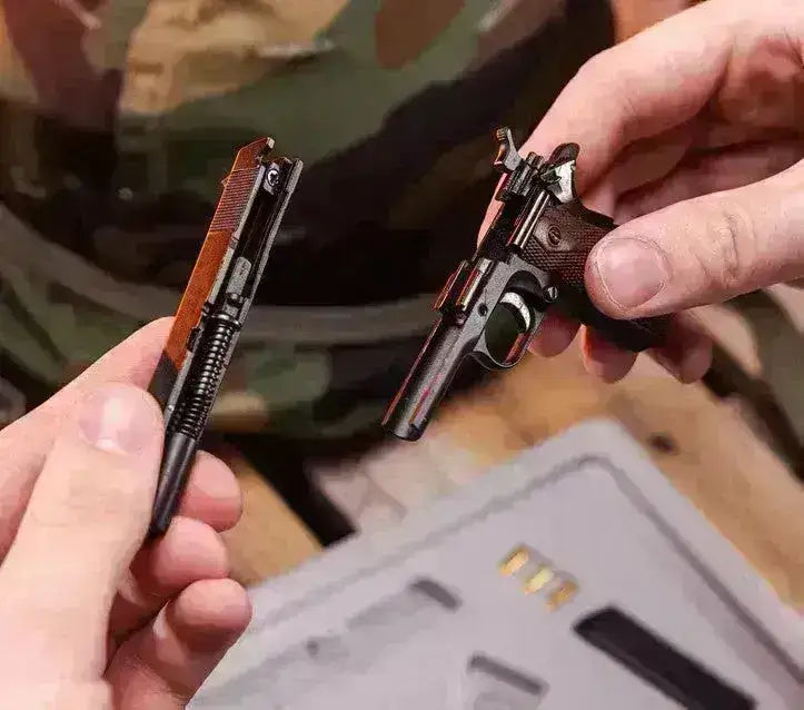 Men vent, det er mer! Mini 1911 er ikke bare en statisk modell; den har også fungerende deler som slide, avtrekker og utskiftbare magasiner. Så nå kan du føle deg som en ekte våpenekspert når du sitter der i godstolen og leker med din lille replika (ikke prøv å skyte med den, da – det er tross alt bare en modell).