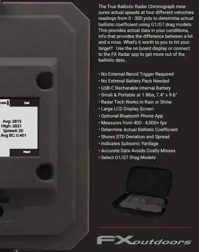 Koble den til FX Radar App for å få enda mer detaljert ballistisk data.