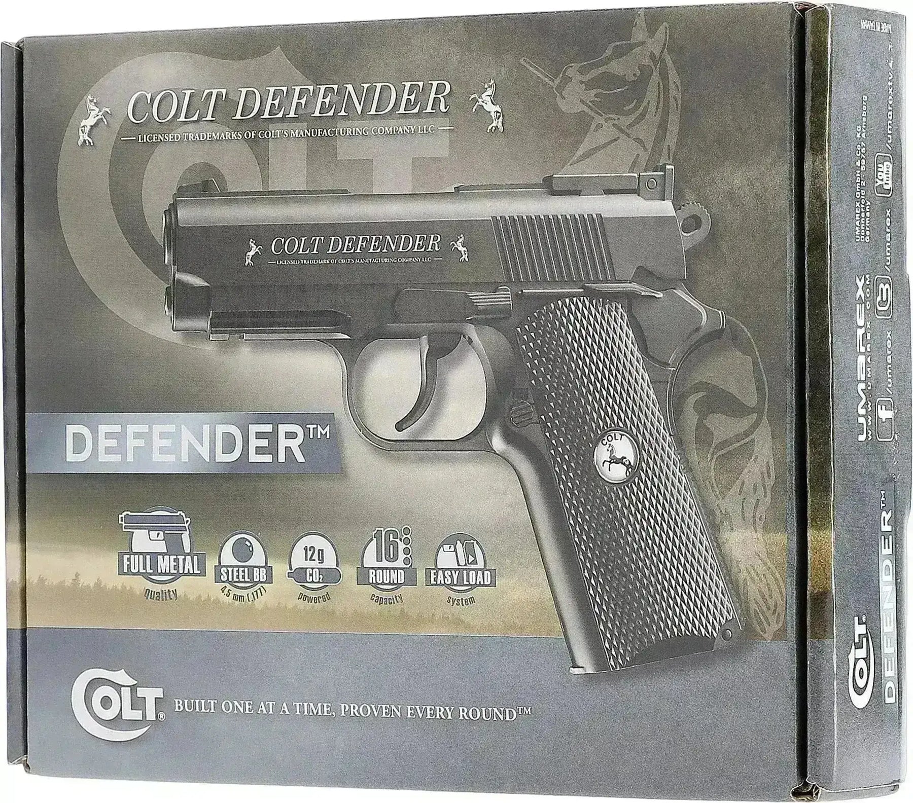 Colt Defender er en solid "mini 1911" CO₂-replika, laget i fullmetall og designet for en realistisk skyteopplevelse. Kompakt, kraftig og brukervennlig – et utmerket valg til fritidsskyting.
