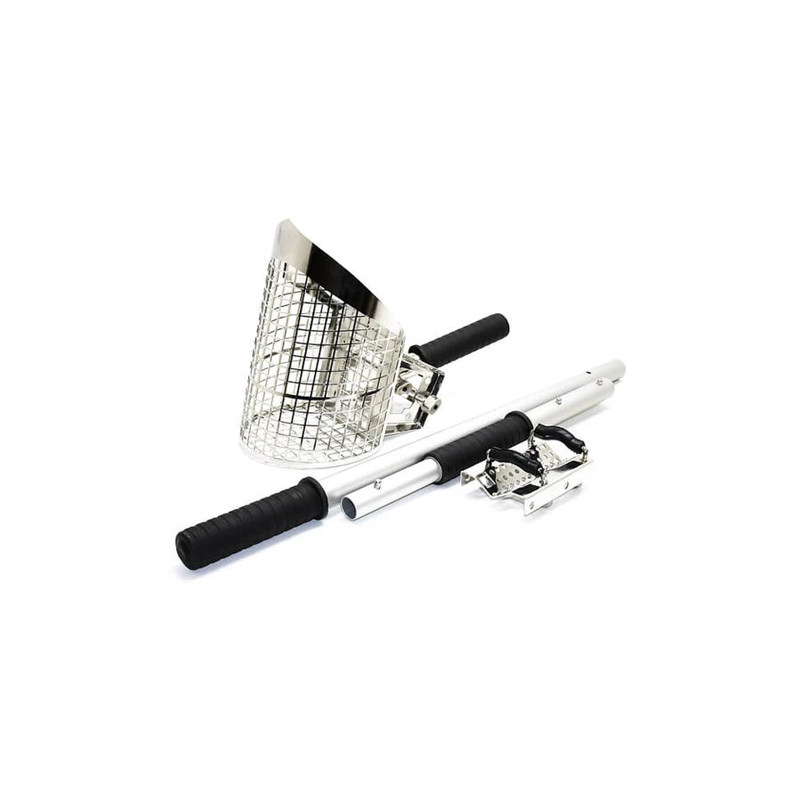 Settet leveres med todelt skaft, justerbar arbeidsvinkel og en skarp frontkant som gjør det enkelt å bryte gjennom kompakt sand. De presise 11 mm laserkuttede hullene lar sand og vann renne ut mens funnene ligger igjen i silen. Ideelt for strandjakt og grunt vann.
