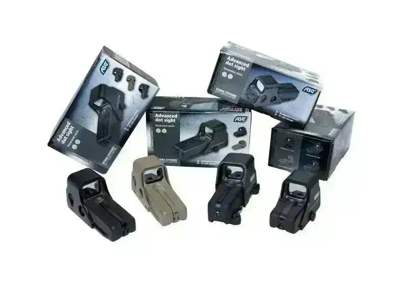 På dette holosiktet fra Strike Systems kan du velge mellom rødt eller grønt siktepunkt. Det drives av 2 stk AAA batterier (følger ikke med).