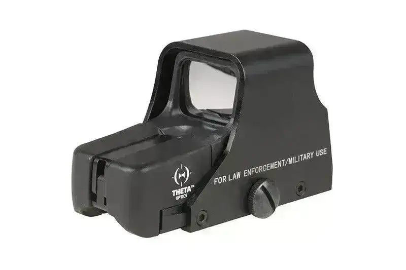 Dette rødpunktsiktet fra Theta Optics er et holografisk rødpunktsikte ofte sett på M15/M16 rifler. Du kan velge mellom rød eller grønn retikkel og er ypperlig å bruke både på dagen og i skumringen takket være justerbar lysstyrke. Siktets siktepunkt kan lett stilles inn både vertikalt og horisontalt festes enkelt på det aller meste av 21mm rails. Siktet er laget med en blanding av polymer og metall, noe som gjør det svært holdbart. Siktet drives av 4stk LR44 batterier som enkelt monteres inn i siktet.
