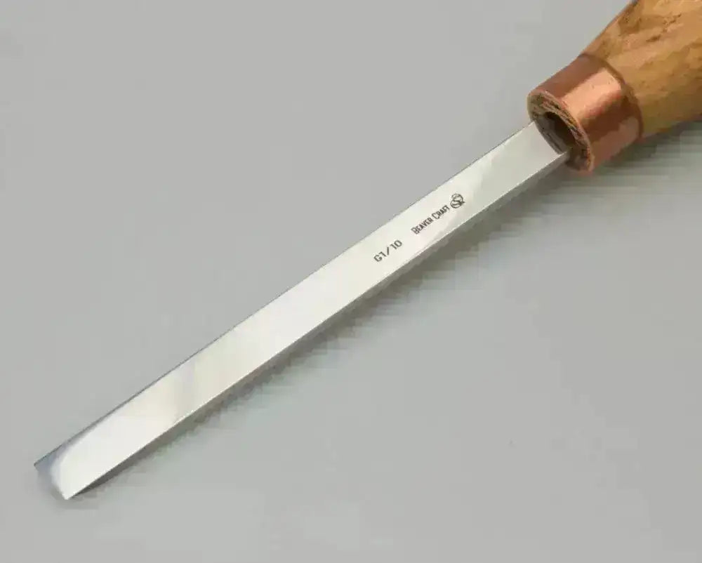 Håndlaget stemjern fra i Ukraina. G1/10 er et skarpt treskjæringsjern/chisel med 10mm bredde, perfekt til treskjæringsprosjekter og et flott tre-verktøy å ha i snekkerbua!