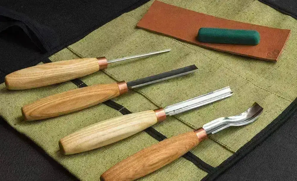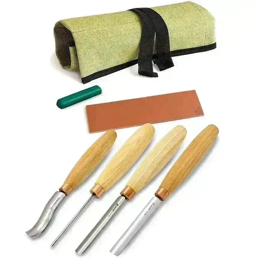 Håndlagde treskjæringsjern fra i Ukraina. SC01 settet er perfekt til deg som vil ha det rette utstyret for å forme og utskjære flotte motiver i tre-prosjektet ditt. Du får en kanvasrull med 4stk forskjellige jern, bladene laget av karbonstål som holder lenge på skarpheten. Disse håndlagde huljernene er kvesset og klare rett ut av esken.