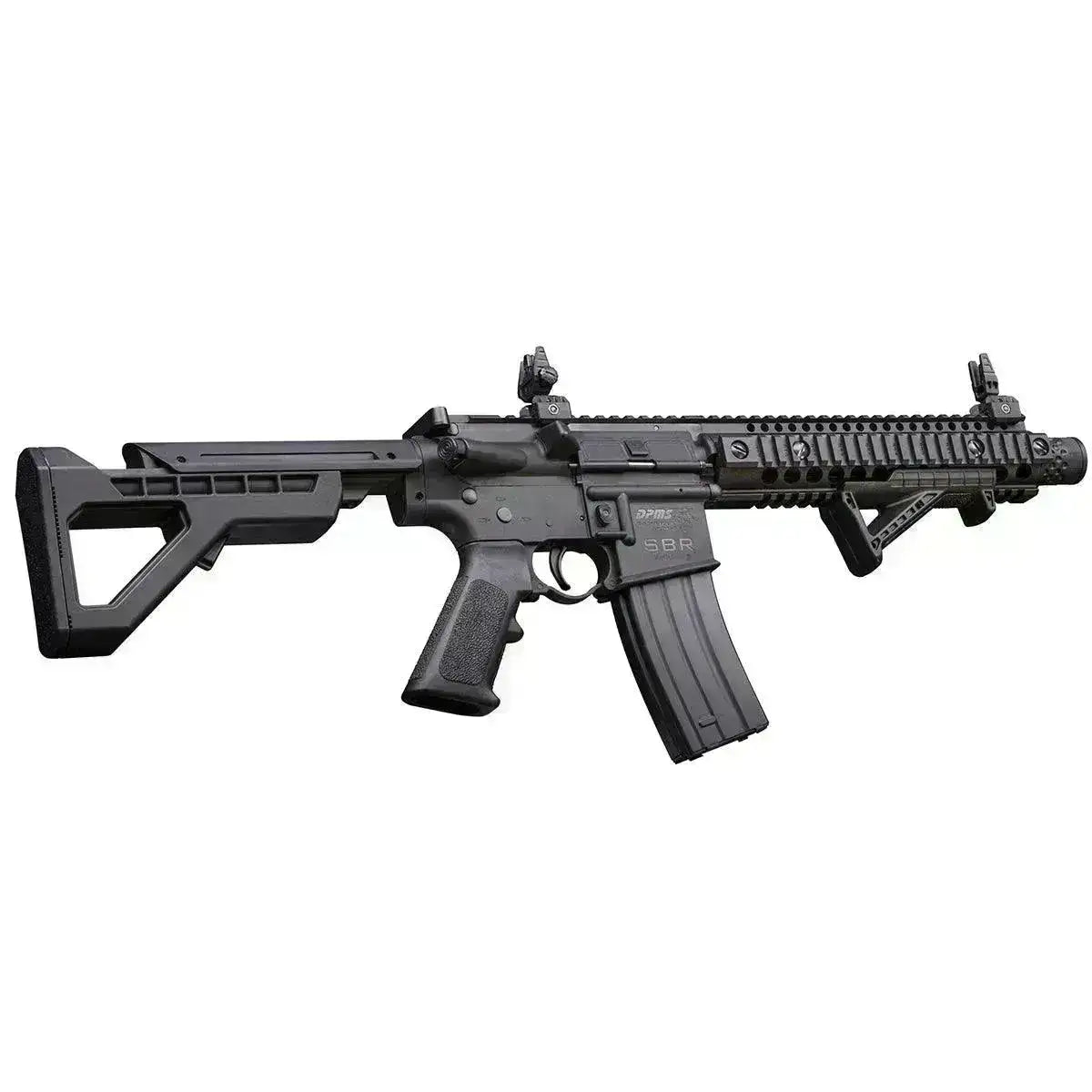 Crosman DPMS SBR er en CO₂-drevet BB-rifle med både semi- og full-auto funksjon og realistisk vekt og følelse. Modellen leveres med 25-skudds magasin, justerbar seks-posisjons kolbe og et ergonomisk AR-kompatibelt pistolgrep. Plattformen har omfattende monteringsmuligheter for optikk og taktisk utstyr.