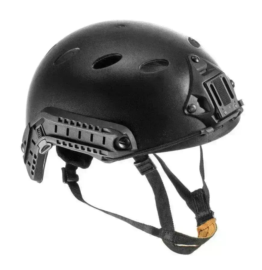 Enkel replika av den kjente PJ FAST hjelmen. Hjelmen er perfekt til airsoftspill og har justerbar hakestropp, NVG montasje og rails på sidene.