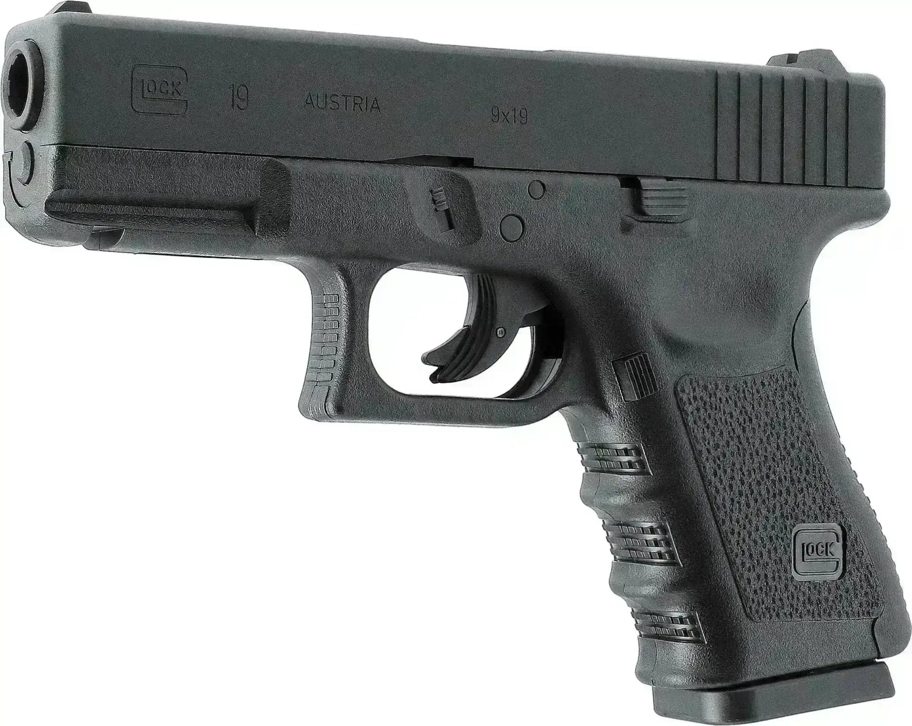 Glock 19 CO2 er en lisensiert replika med kjent ergonomi. Den leveres med 11skudds magasin og fylles med 12g CO2 i grepet.