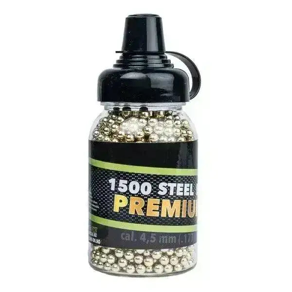 Her har du våre egenproduserte PREMIUM 4,5mm stålkuler til din BB Luftpistol eller gevær! Premium kulene som du finner her er dekt med et lag med messing for å gli ekstra bra i løpet samtidig som de "støver" mindre i løpet enn det tadisjonelle stålkuler gjør! Kulene er nøye testet for å oppfylle strenge krav på både vekt og rundhet. Så her får du kuler i TOPP kvalitet til en svært fornuftig pris.