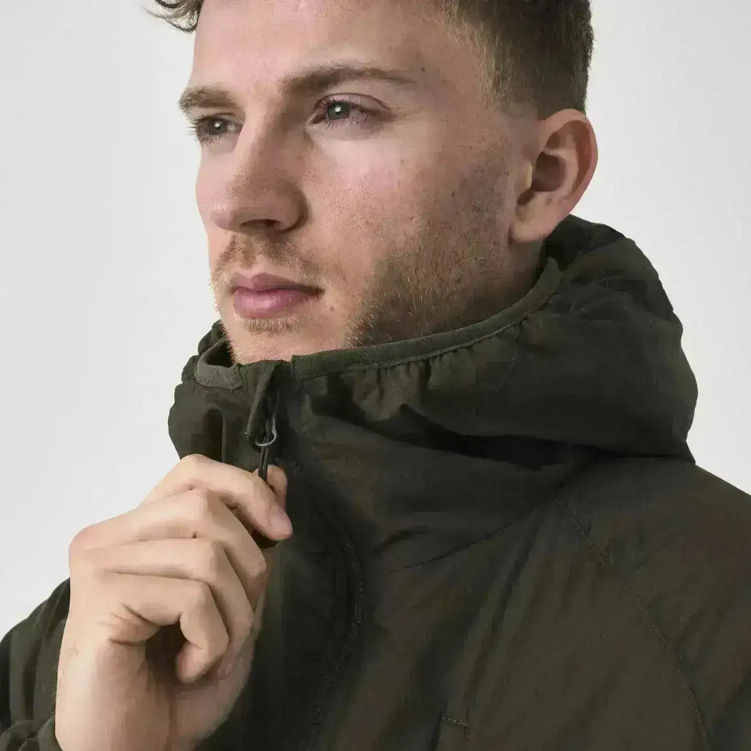Jakken kan enkelt pakkes sammen når den ikke er i bruk og legges i en medfølgende pose. Dette er en jakke som du enkelt kan pakke ned i sekken eller henge utpå sekken og finne frem når du trenger den.