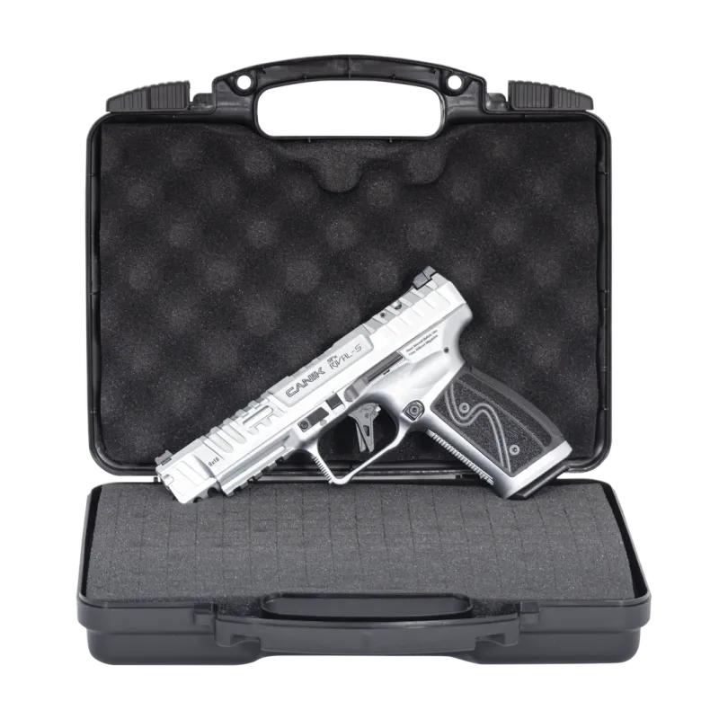 Denne robuste kofferten fra RANTECH er designet for sikker oppbevaring av håndvåpen. Perfekt for å beskytte pistolen under transport eller oppbevaring.