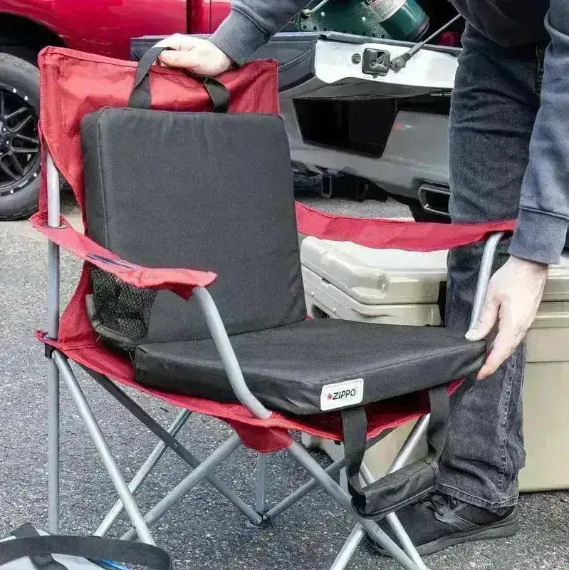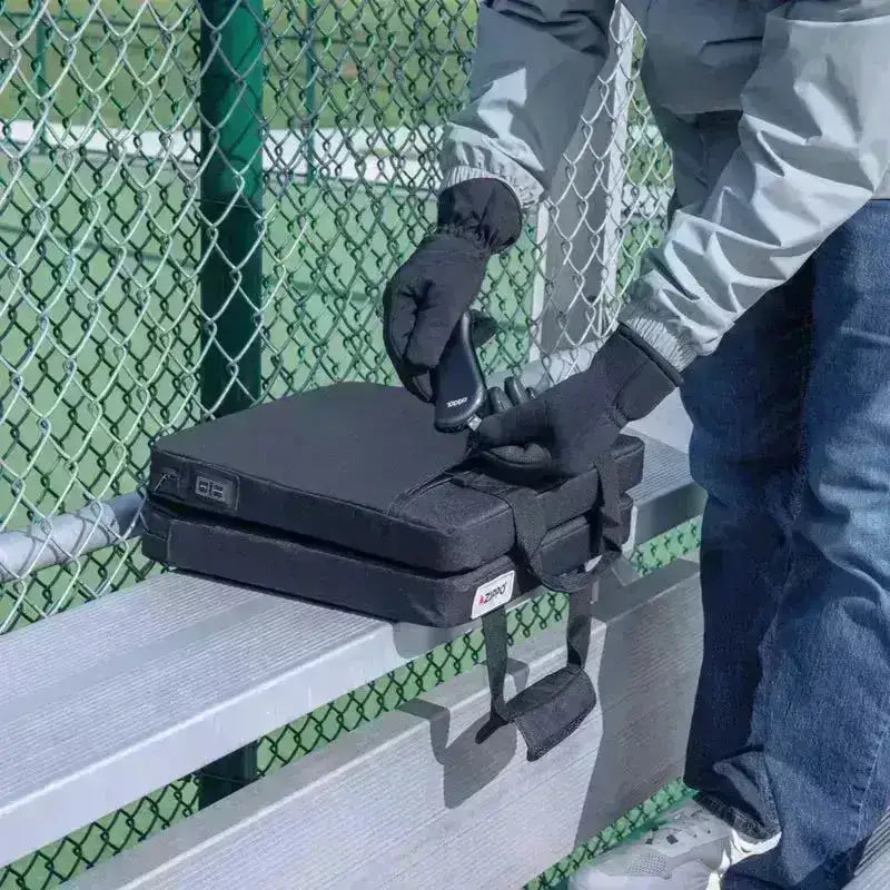 Gjør kalde stadionseter eller kjølige jaktplasser varme og behagelige med Zippo dobbelt oppvarmet sete. Dette myke og polstrede setet kobles til en USB-kompatibel strømforsyning, som for eksempel Zippo HeatBank®-enheter, for justerbar varme. Med vannavstøtende nylonkonstruksjon, flere varmenivåer og kompakt sammenleggbar design, er det perfekt for alle typer utendørsaktiviteter.