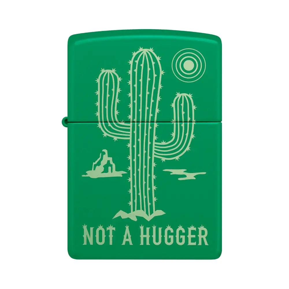 Zippo Not a Hugger – Grass Green Matte lighter med kaktus motiv